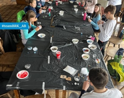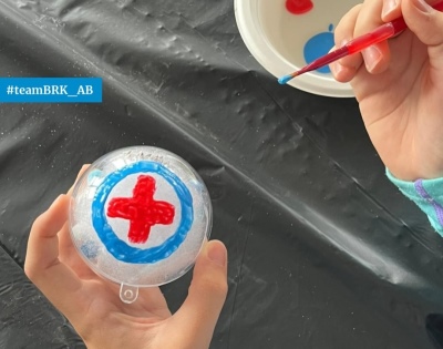 Runde wurden Weihnachtsbaumkugeln mit dem Wasserwacht-Logo